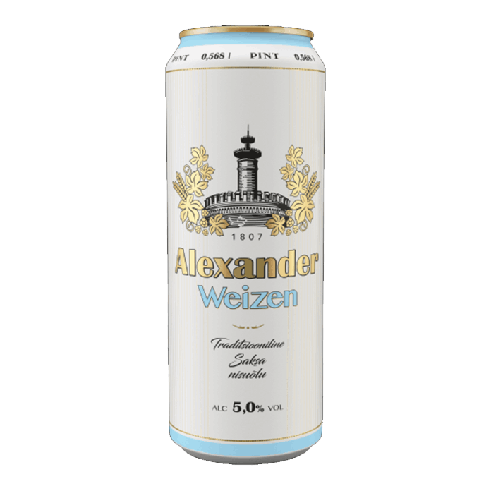 Alexander Weizen is a double fermented classic German-style wheat beer. Double fermentation means that partly non-fermented beer is added to beer that has already finished fermenting, which results in double fermentation. The beer has a fruity sweet and sour flavor and is rich in citrusy freshness.