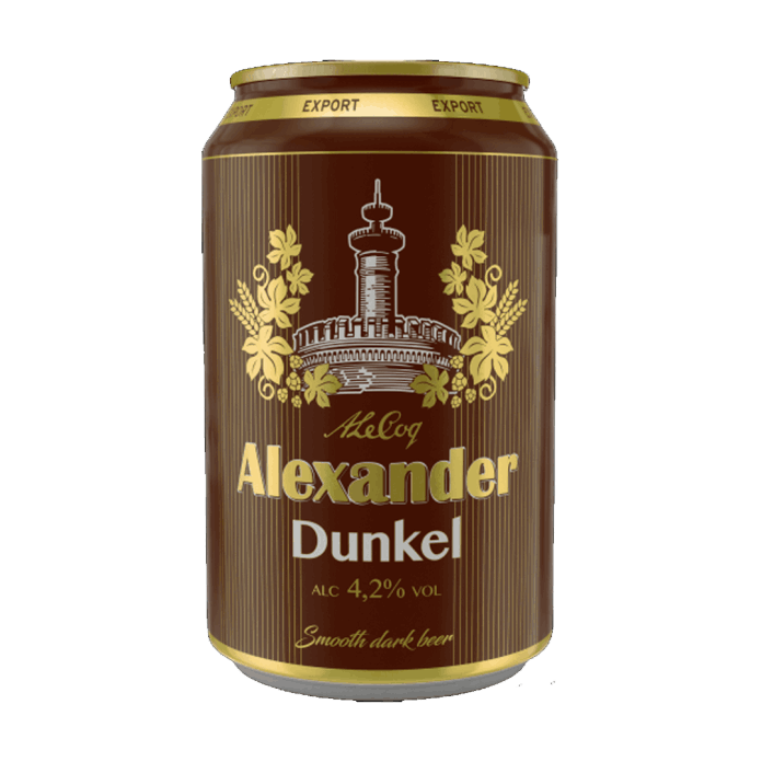 Alexander Dunkel is a dark and exceptionally light lager with a beautiful deep brown color. The velvety taste of Dunkel is moderately sweet with hints of aromatic hops.