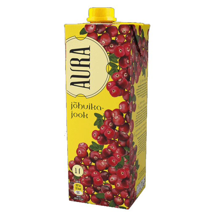 Aura cranberry juice drink is made from cranberries that are growing in the bogs around the Baltic Sea. In folk medicine, cranberries are used to reduce fever in the case of colds and as a refreshment to make poorly people better.