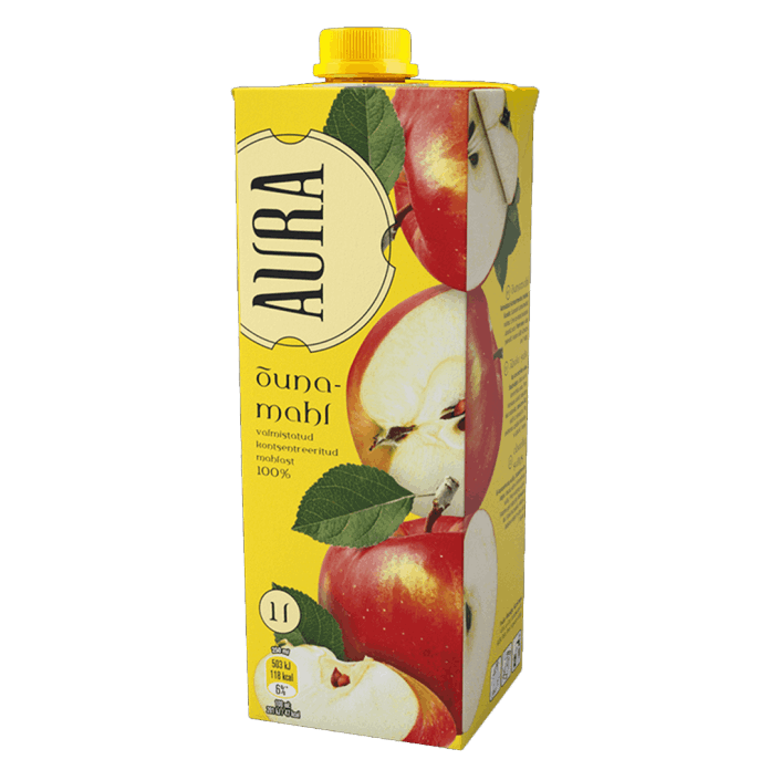 You can make a refreshing alcohol-free cocktail by adding carbonated Aura cowberry or lemon water to Aura apple juice. The 100% juice content means that it is pure juice, i.e. juice to which no additives (incl. sugar) have been added.