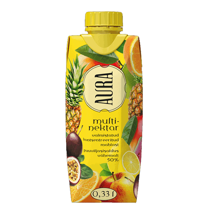 Multi-nectar is usually based on pineapple juice. Aura multi-nectar, however, is based on a Nordic favorite – apple juice. Mango, pineapple and other tropical fruits add their delicious notes to the drink.