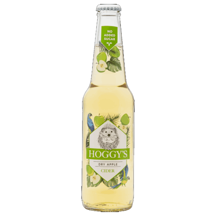 Hoggy’s Dry Apple is a light dry apple cider, with a noticeable natural sour apple flavor and aroma. It contains no added sugar.