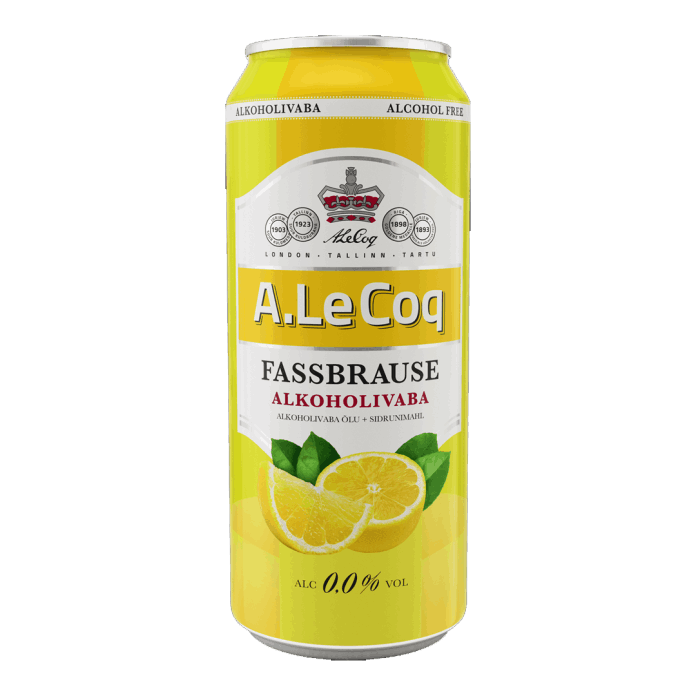 A. Le Coq Fassbrause Lemon is a naturally fermented drink with a light lemon flavor made from non-alcoholic beer and lemon juice. The drink contains many vital B-group vitamins (B6, B12, B5 and B7). Fassbrause is a good healthy alternative to a soft drink, both pleasantly refreshing and a great thirst-quencher.